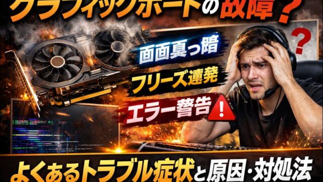 ――突然映らない・フリーズする・異音がする…困った時の完全ガイドパソコンのトラブルの中でも、グラフィックボード(GPU)の不調や故障は非常に厄介だ。ゲームが起動しない、画面が真っ暗になる、突然フリーズするなど、症状は多岐にわたる。しかも厄介...