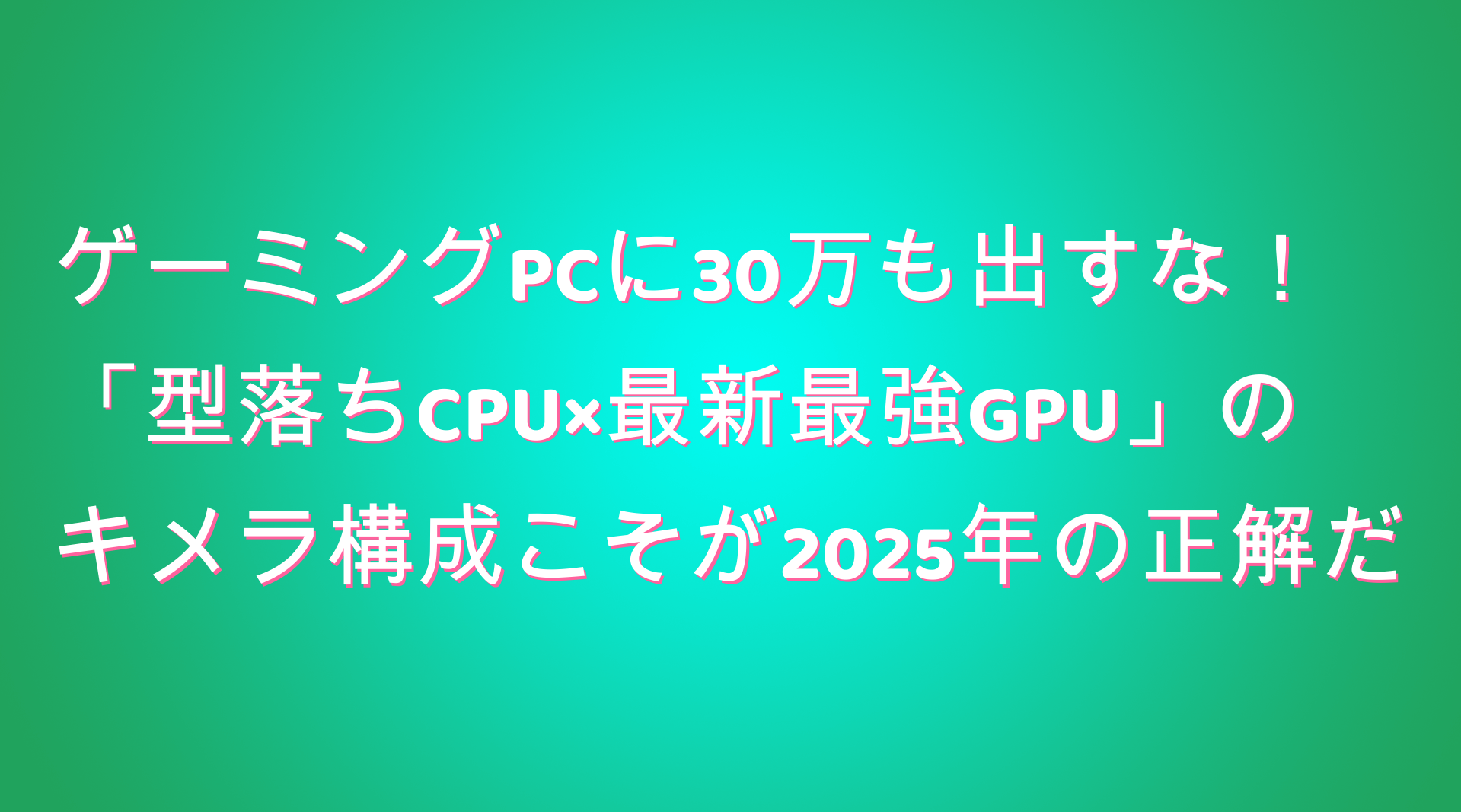 ゲーミングPCに30万も出すな!「型落ちCPU×最新最強GPU」のキメラ構成こそが2025年の正解だ