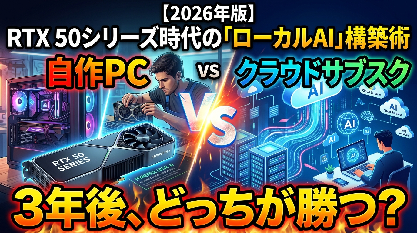 RTX 60シリーズ(次世代)の影: 2027年〜2028年頃に登場が予想される次世代機では、さらなるVRAMの増量や、AI専用の新しいデータ形式への対応が予想されます。しかし、2026年の今、50シリーズを導入することで得られる「3年間の先行者利益」は、待機するコストを遥かに上回ります。