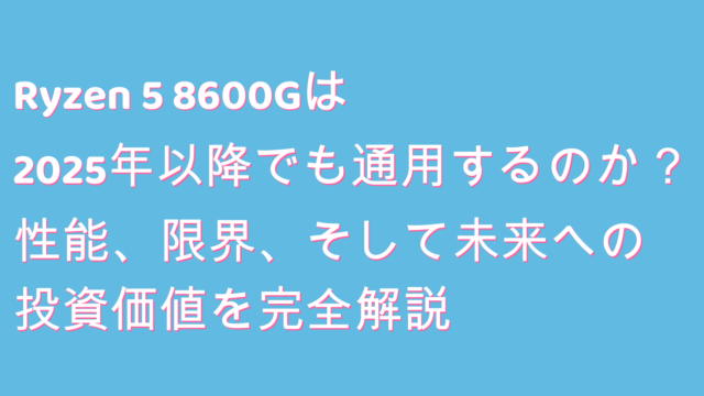 Ryzen 5 3400Gは2025年以降も使えるのか?1. はじめに:2025年、Ryzen 5 3400Gを取り巻く環境2019年に登場したRyzen 5 3400G。当時は「グラフィックボードなしでゲームができる革命的なCPU(APU...